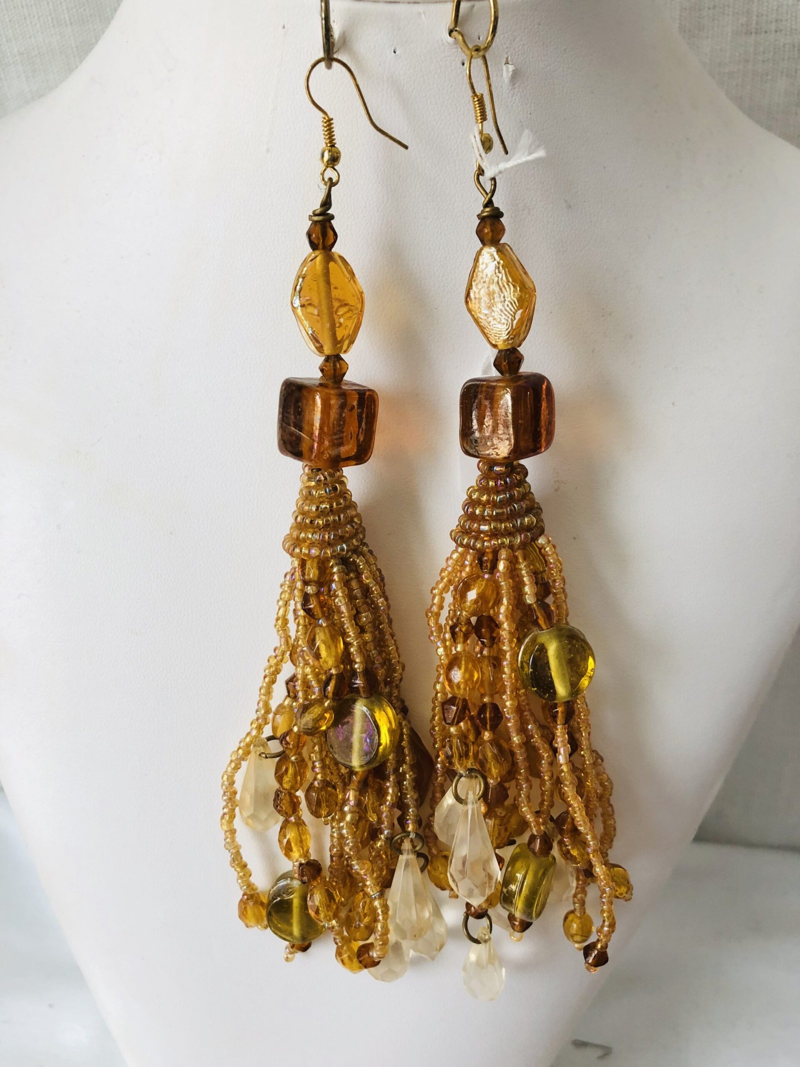 Glass Beads Tassel Earrings.Glass Beads Tassel Earrings